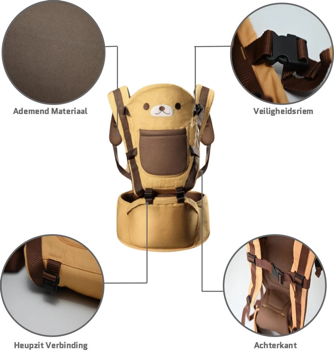 Baby Draagzak – Buik/Rug Babydrager Met Zacht Zitje (0-36 Maanden) – Bruine Beer