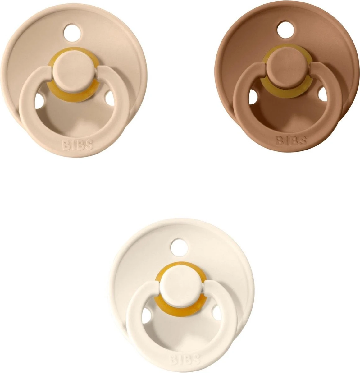 Deze set van 3 BIBS fopspenen bevat de kleuren: Vanilla, Earth en Ivory! BIBS fopspenen bestaan uit 100% natuurlijk rubber, zijn flexibel en voelen fluweelzacht aan. De BIBS speen is ontwikkeld om de zuigreflex van het kindje te ondersteunen. Het schildje van de speen is rond en buigt weg van het gezichtje, waardoor eventuele irritaties worden verminderd. De BIBS fopspeentjes komen in énorm veel kleuren voor en hier blijven talloze prachtige creaties bijkomen. Naast het unieke design van de speen, heeft de BIBS speen ook hoogwaardige kwaliteiten én voelt deze comfortabel aan.