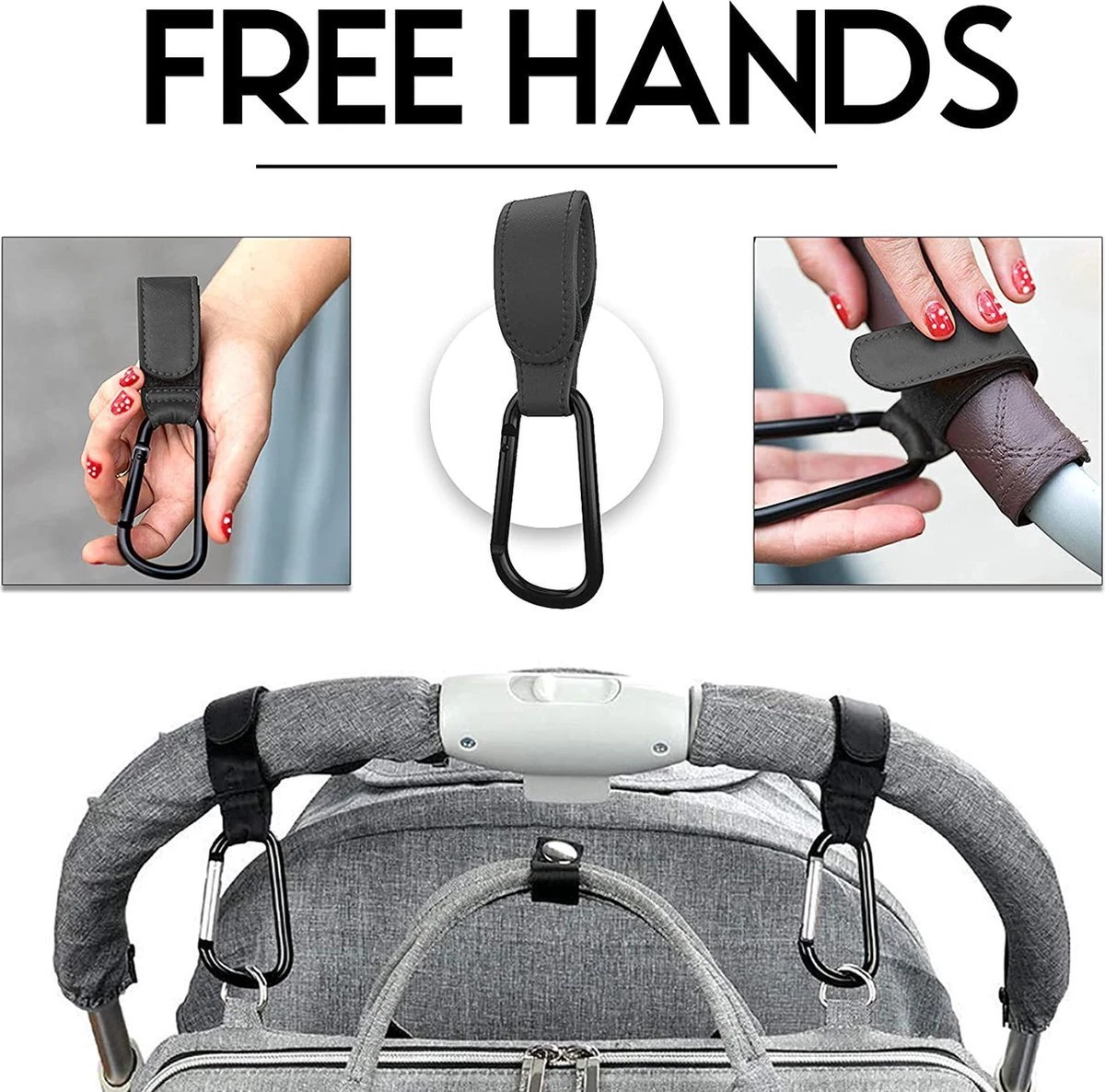 - maak de perfecte tasclips voor de kinderwagen, zodat je hem kunt positioneren