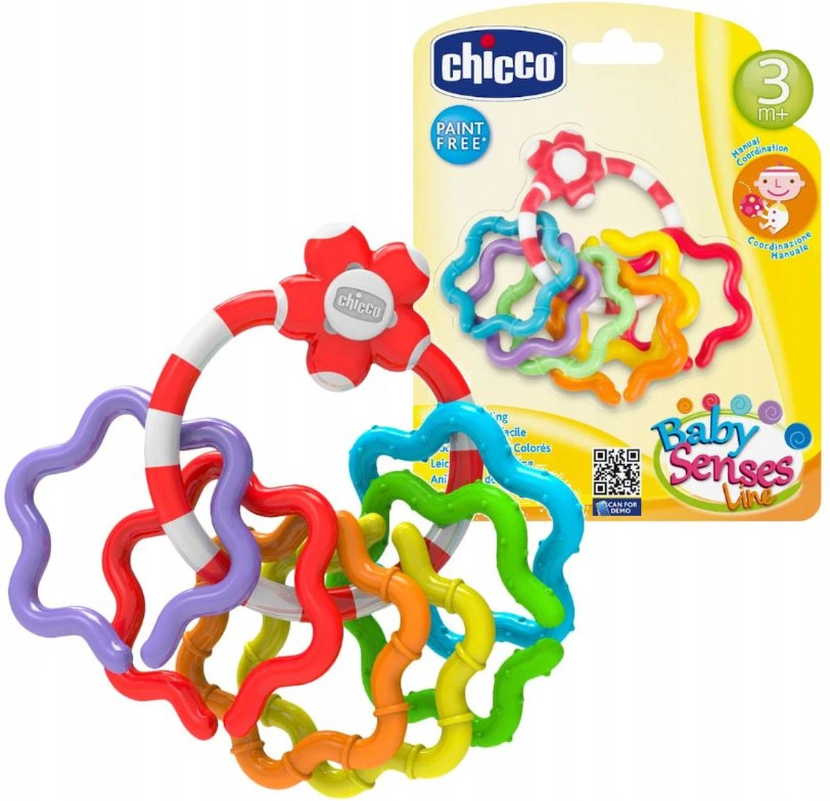 Bestaat uit 6 ringen in verschillende kleuren die makkelijk van de grote ring te halen zijn.