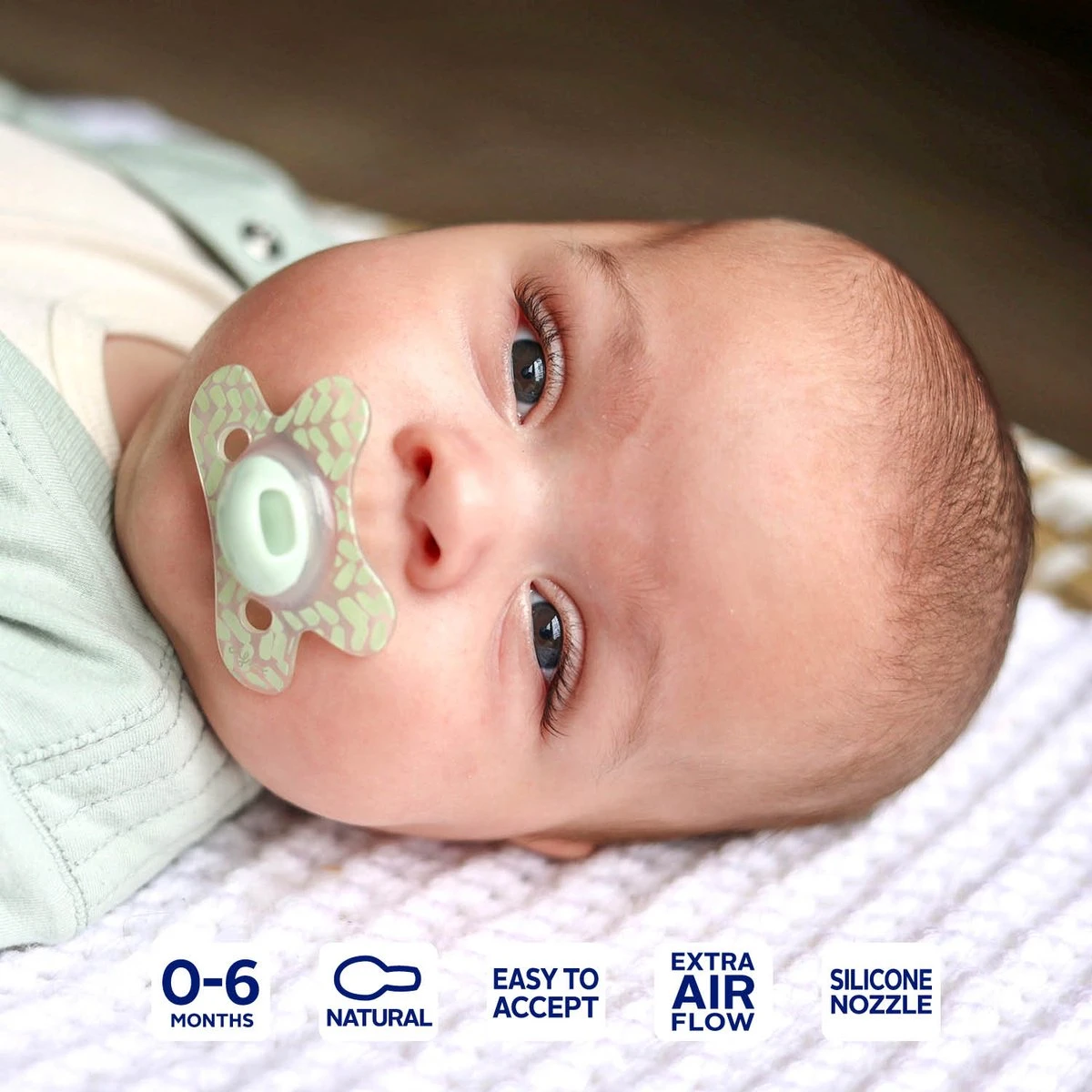 - De gaatjes in het fopspeenschildje zorgen voor extra luchttoevoer wat huidirritatie voorkomt. .