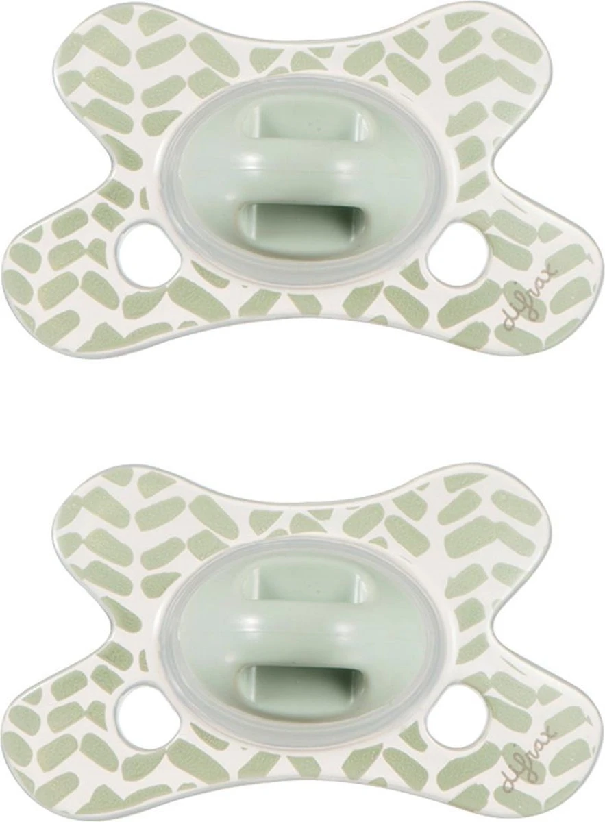 - Difrax fopspenen hebben een siliconen zuiggedeelte wat hygiënischer en veiliger is dan natuurrubber.