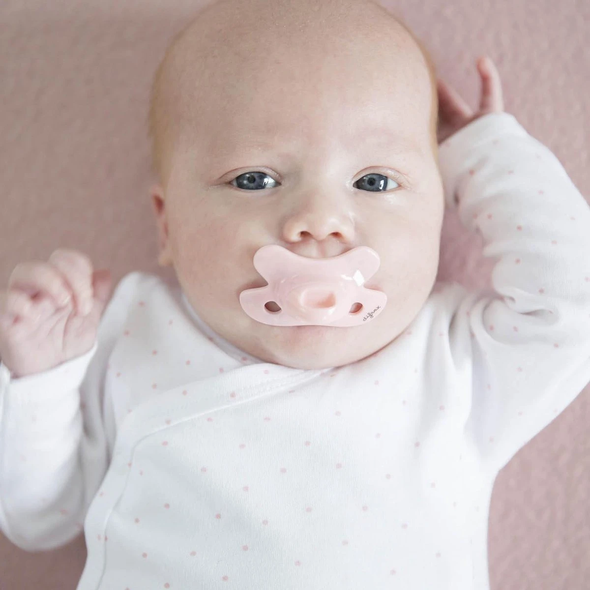 De lichtroze Newborn Difrax Dental Pure fopspeen heeft een platte en bolle kant waardoor je kindje meer grip ervaart en de speen zo beter in het mondje kan houden.