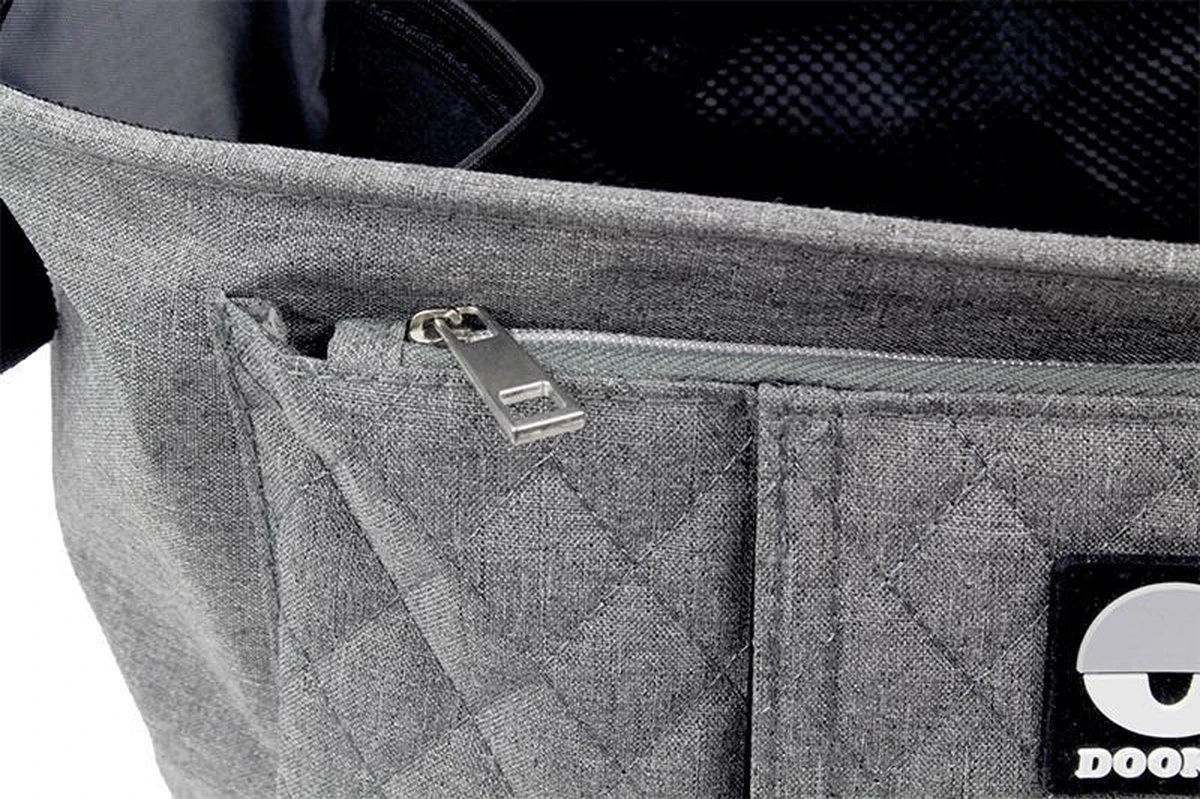 Deze stijlvolle, praktische en eigentijdse Organizer is een musthave voor iedere mama en papa! De grijs melange stof krijgt een extra accent door de zilverkeurige rits. Alle essentials voor je kindje en jezelf heb je snel bij de hand wanneer je erop uitgaat. Denk bijvoorbeeld aan fles, eten, knuffeltje, telefoon, speen, etc.. Lichtgewicht, waterafstotend en gemakkelijk te reinigen met een vochtig doekje. Met de 2 verstelbare bandjes met kliksysteem maak je de Organizer gemakkelijk vast aan de duwstang van je wagen/buggy. In het opberg compartiment kun je je spullen kwijt. Door de vakjes (3 aan de binnenkant, 1 aan de buitenkant) zijn je spullen super praktisch te organiseren. Twee vakken hebben een ritssluiting zodat je ook je telefoon, sleutels en portemonnee veilig kunt opbergen. Twee vakjes zijn ervoor gemaakt om drinkflessen rechtop te houden. Er is een speciaal ritsvakje voor billendoekjes waardoor je een snelle toegang tot je doekjes hebt. Handig toch?! Kenmerken Dooky Buggy Organizer grey melange: * Voor aan de duwstang van je wagen/buggy * 4 Opbergvakken waarvan 2 met rits en 1 voor billendoekjes * Bevestiging met stelbare clips * 14 x 40 x 17 cm (5 liter) * Stijlvolle en moderne uitstraling * Lichtgewicht * Waterafstotend * Gemakkelijk te reinigen met een vochtig doekje * Polyester * BSCI-keurmerk (o.a. sociaal beleid, fairtrade, geen kinderarbeid, eco vriendelijkheid) * Vegan (geen dierlijke grondstoffen gebruikt) Naast deze Dooky Buggy Organizer grey melange kun je bij ons terecht voor vele andere items van Dooky (). Over Dooky: Jouw kindje ergens mee naar toe nemen is door Dooky nog nooit zo gemakkelijk geweest. Dooky heeft tal van producten die niet meer weg te denken zijn uit het straatbeeld. Bijvoorbeeld heeft Dooky diverse hoezen ontwikkeld om in een handomdraai de autostoel groep 0+ of groep 1 te voorzien van een nieuw uiterlijk. Inmiddels zijn ook de voetenzakken, gordelbeschermers, zonnebrillen en slabbetjes niet meer weg te denken uit het assortiment. Elk product is verkrijgbaar in diverse dessins zodat er voor elke smaak een product te vinden is. Dooky heeft alle producten in huis om veilig en stijlvol met je kleintje op pad te gaan.