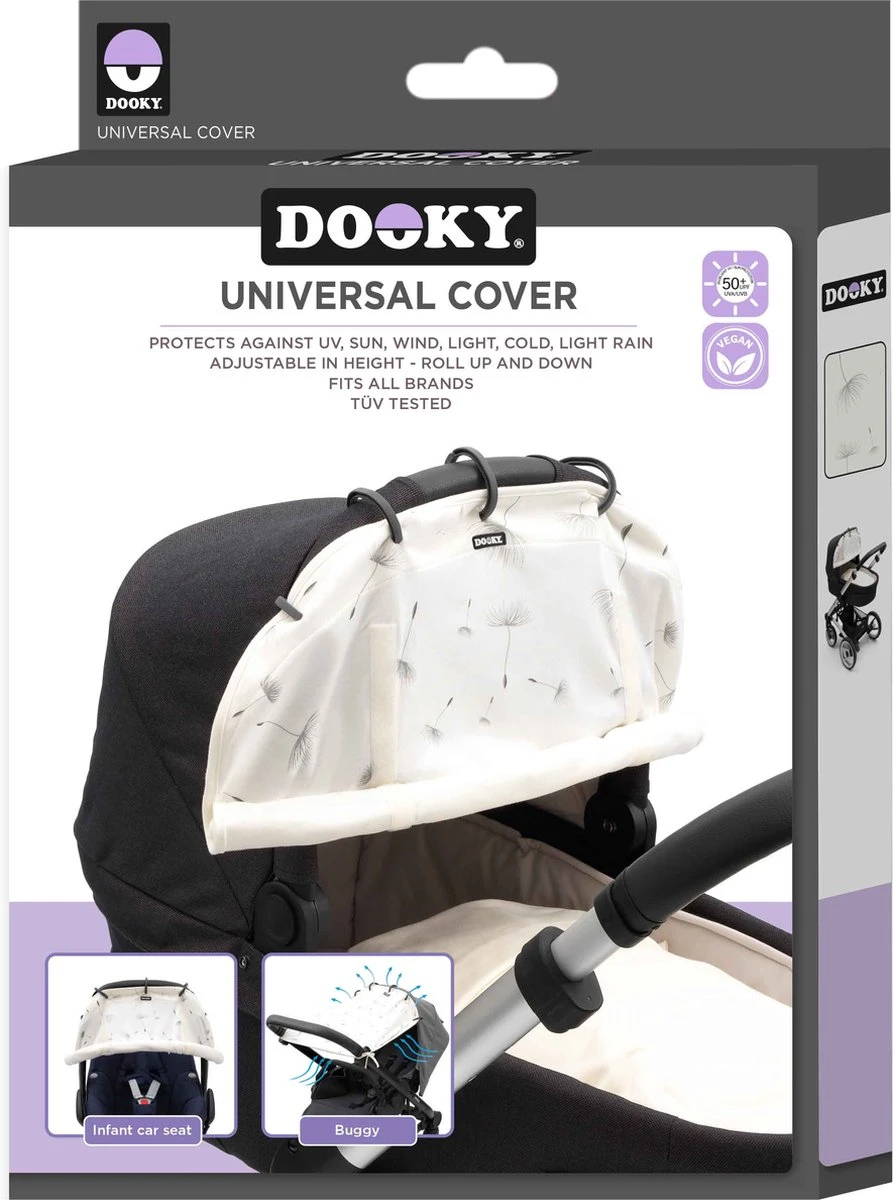 Dooky biedt bescherming tegen zon, regen, wind, sneeuw en licht. Dooky is eenvoudig binnen enkele seconden met kunststof ringen te bevestigen en gemakkelijk in elke gewenste hoogte te verstellen. Geschikt voor alle merken reiswiegjes, autostoeltjes groep 0+, kinderwagens en buggy’s. Kenmerken van de Dooky: • Gemaakt van 100% katoen • Machine wasbaar • Dooky is universeel • Verstelbaar in hoogte door de Dooky op te rollen.