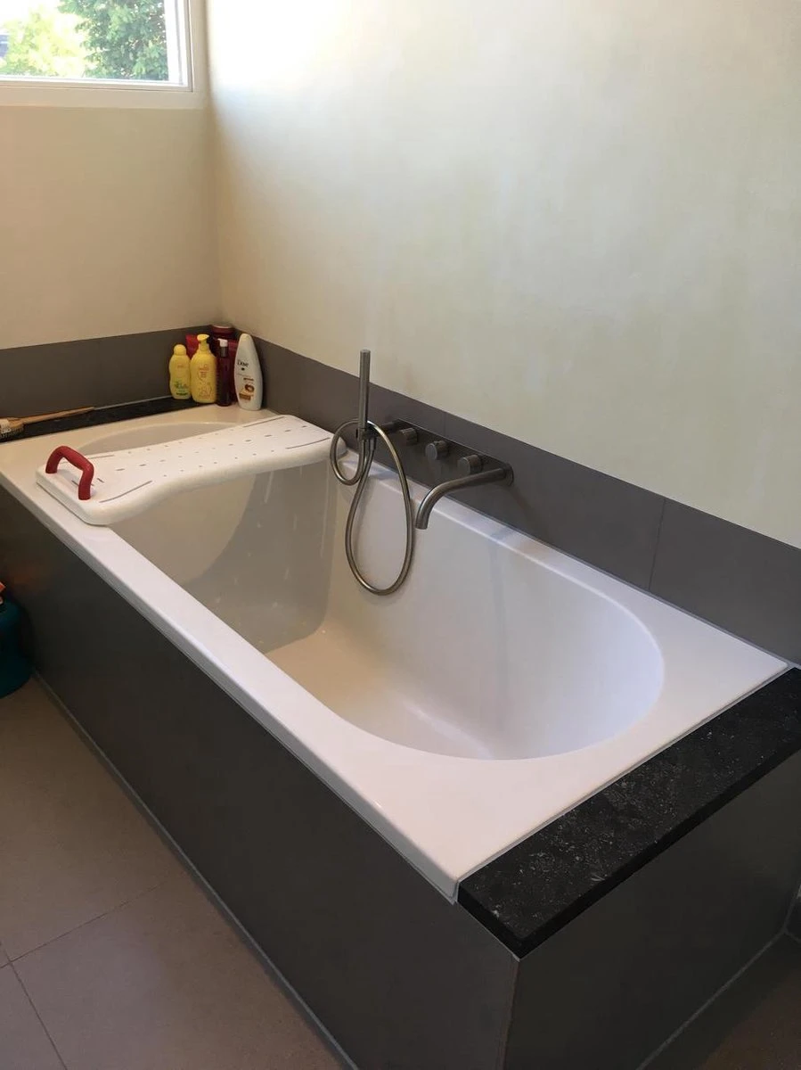 Deze badplank is een hulpmiddel om veilig en makkelijk in bad te stappen.