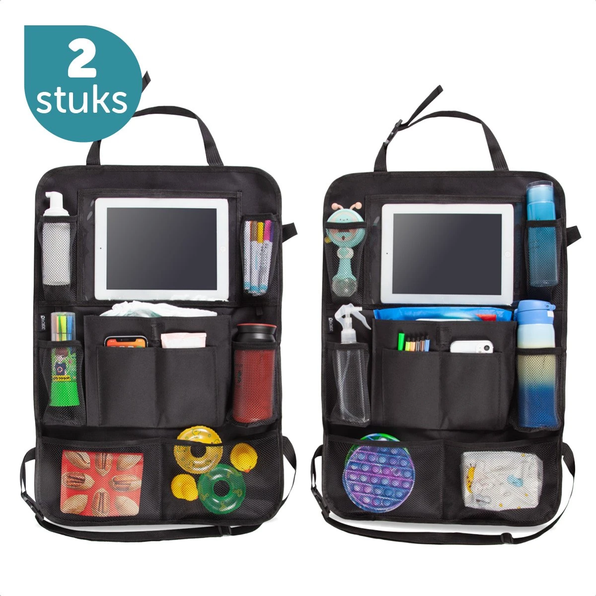 De auto organizer van ForDig zorgt ervoor dat je auto vanaf nu steeds netjes en opgeruimd blijft. Dankzij de vele opbergvakken berg je makkelijk snacks, flesjes of blikjes drinken, knuffeldieren, boekjes en speelgoed op… kortom je kan alles overzichtelijk houden dankzij de organizer! Rommel op de achterbank? Nu niet meer! De organizer beschikt ook nog eens over een tablethouder, super handig voor onderweg!