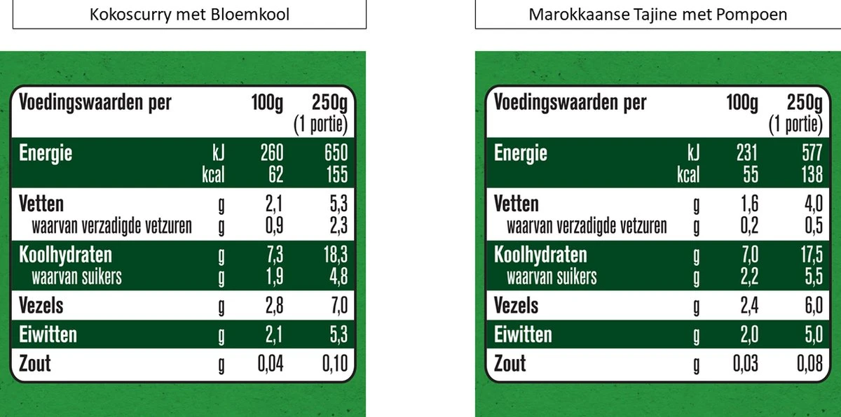 | Voedingswaarde | Zie afbeelding voor voedingswaardetabel |