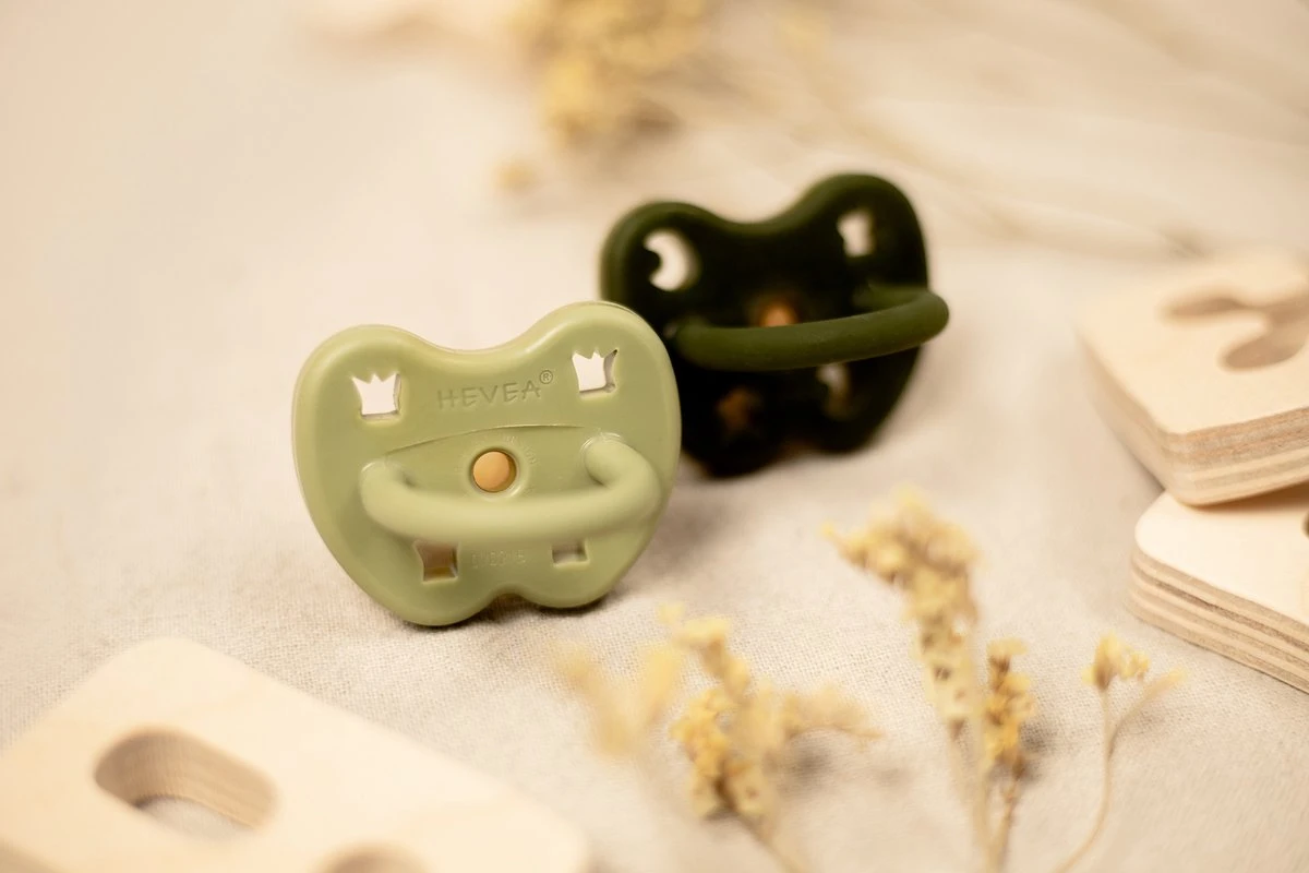 Hevea | Dental Orthodontisch 3-36 Maand | Moss Green, Deep Forest Green, Milky White | 100 % Natuurrubber | Kroontjes | Ster & Maan