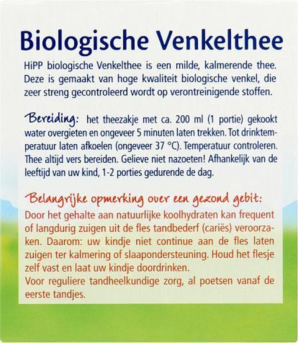HiPP – Thee Biologische venkelthee in zakje – 6 stuks 30g