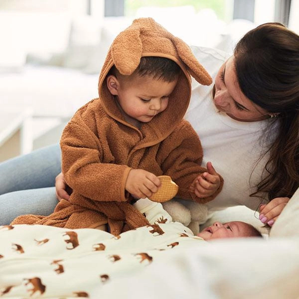 Een badstof badjasje is altijd handig voor jouw dreumes. De badjas is perfect om te gebruiken na het badderen, douchen of zwemmen. De zachte badstof neemt gemakkelijk water op en houdt daarmee jouw kleintje lekker warm. De vrolijke capuchon met oren droogt gemakkelijk de haartjes. Het badjasje is ook handig om mee te nemen op vakantie of mee naar een logeerpartijtje.