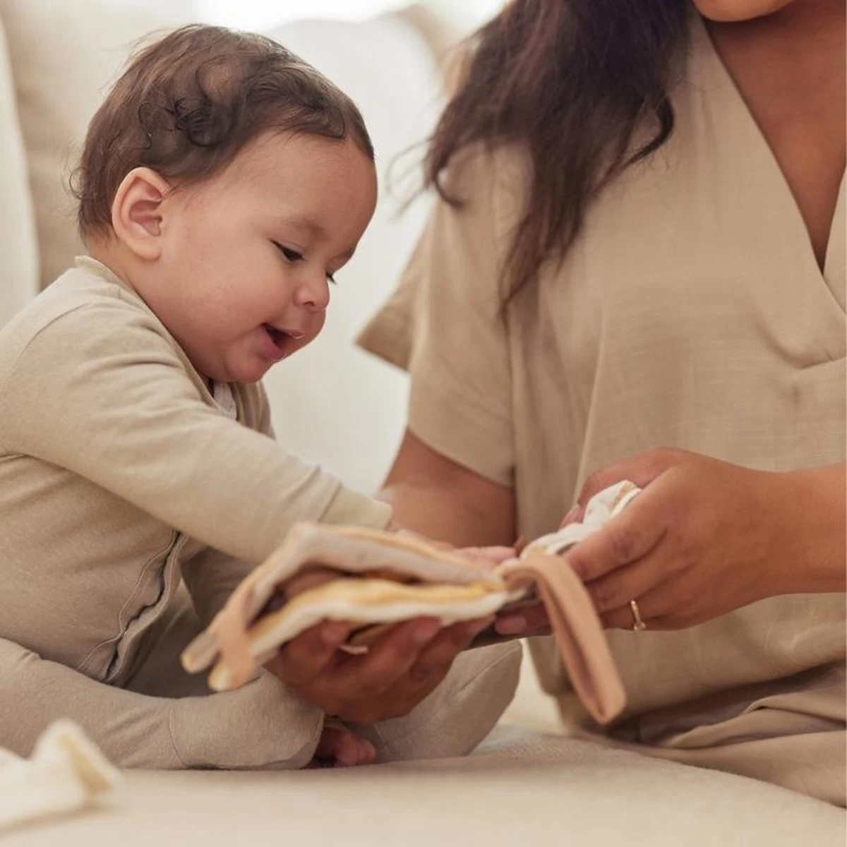 Dit leuke boekje zal zorgen voor uren vermaak van jouw kleintje. Dit zachte babyboekje is gemaakt van 100% polyester. Dus extra zacht voor jouw kleintje! Het boekje bevat allerlei schattige diertjes zoals een eendje, vlinder en een bijtje. Daarnaast bevat dit boekje allerlei elementen die de zintuigen van jouw kleintje prikkelen zoals: een baby spiegel, kleurrijke labeltjes en knisperende elementen. Bovendien ziet er een handig lusje met klittenband aan het boekje zodat je deze gemakkelijk kan bevestigen aan bijvoorbeeld de kinderwagen.