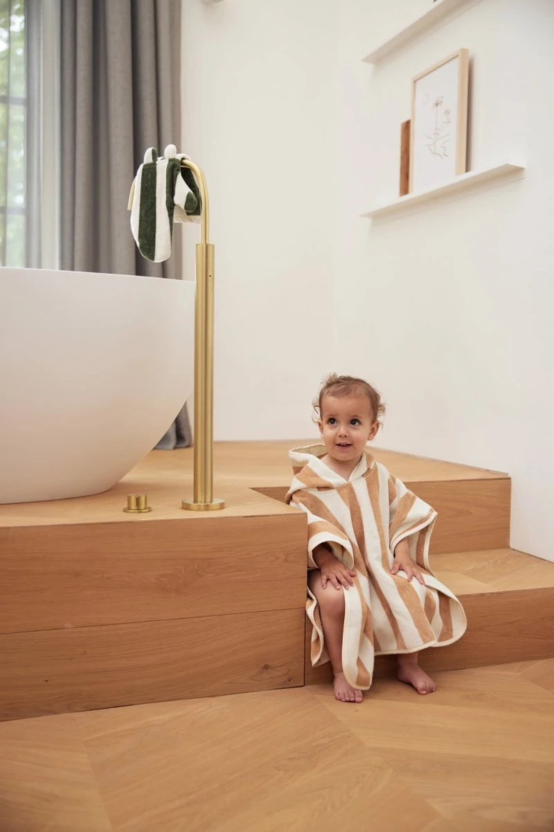 Shop deze te leuke gestreepte badponcho in Biscuit en Leaf Green