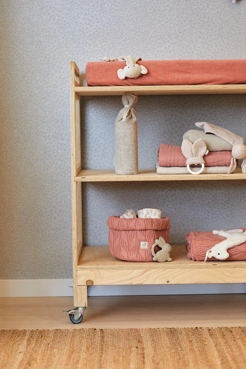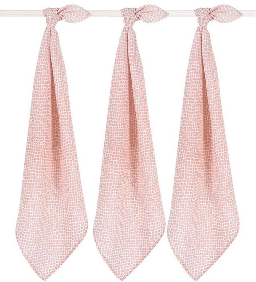 Verkrijgbaar in roze rosewood en bruin chestnut. Er zijn ook hydrofiele doeken in andere prints verkrijgbaar.