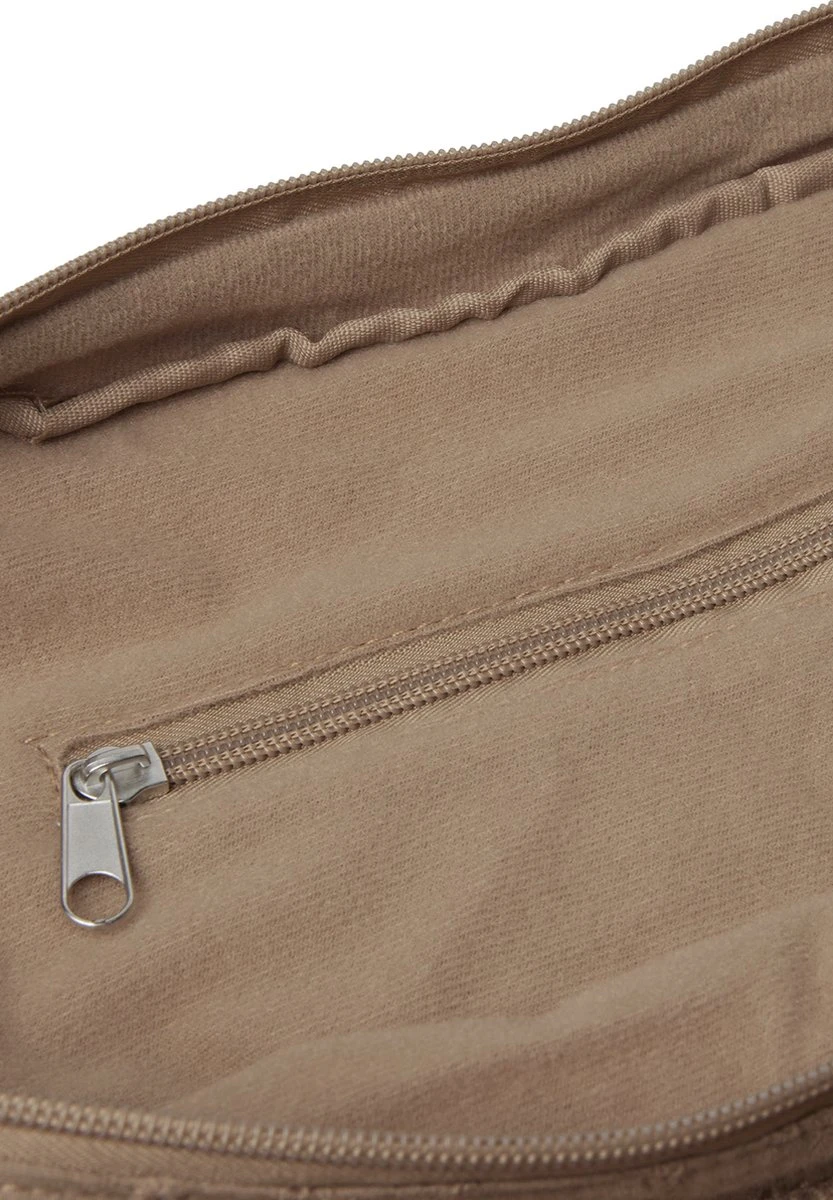 Je kunt de tas natuurlijk om je schouder dragen, maar als je de kinderwagen of buggy bij je hebt, kun je hem ook gewoon aan de wagen hangen. Dit komt door de extra lange hengsels aan de tas. In de binnenkant zit een handig vakje met een rits waar je bijvoorbeeld je portemonnee in kunt doen, dan hoef je daar in elk geval niet naar te zoeken wanneer je hem nodig hebt.