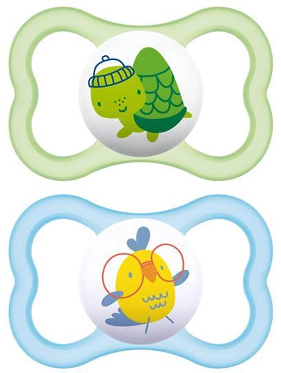 De extra grote luchtopeningen van het MAM Air speentje laten meer lucht door op het gezichtje van de baby. Dat maakt het speentje bijzonder huidvriendelijk.