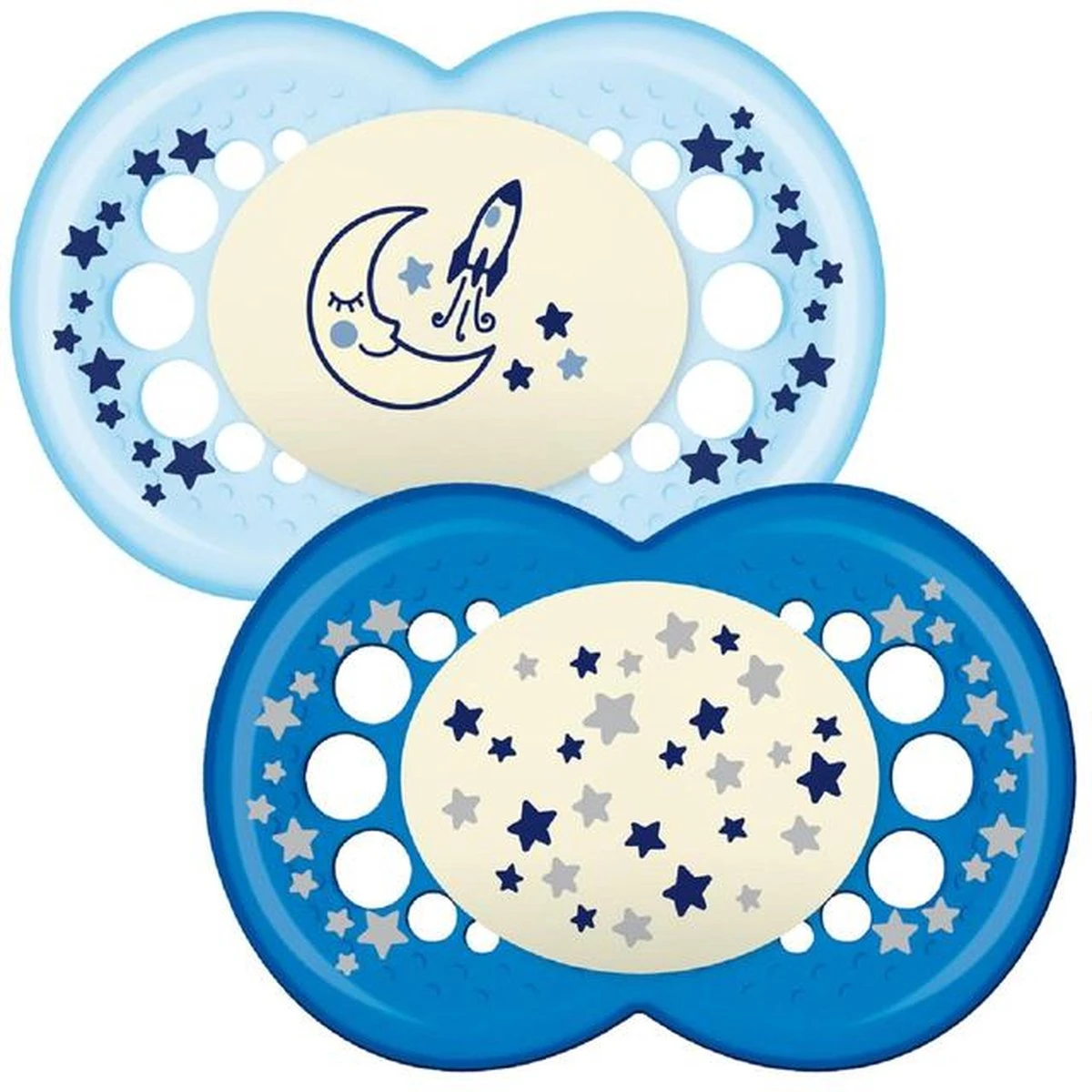 MAM Fopspeen Nacht Siliconen, Blauw/creme, 6-16 Maanden, 2 Stuks