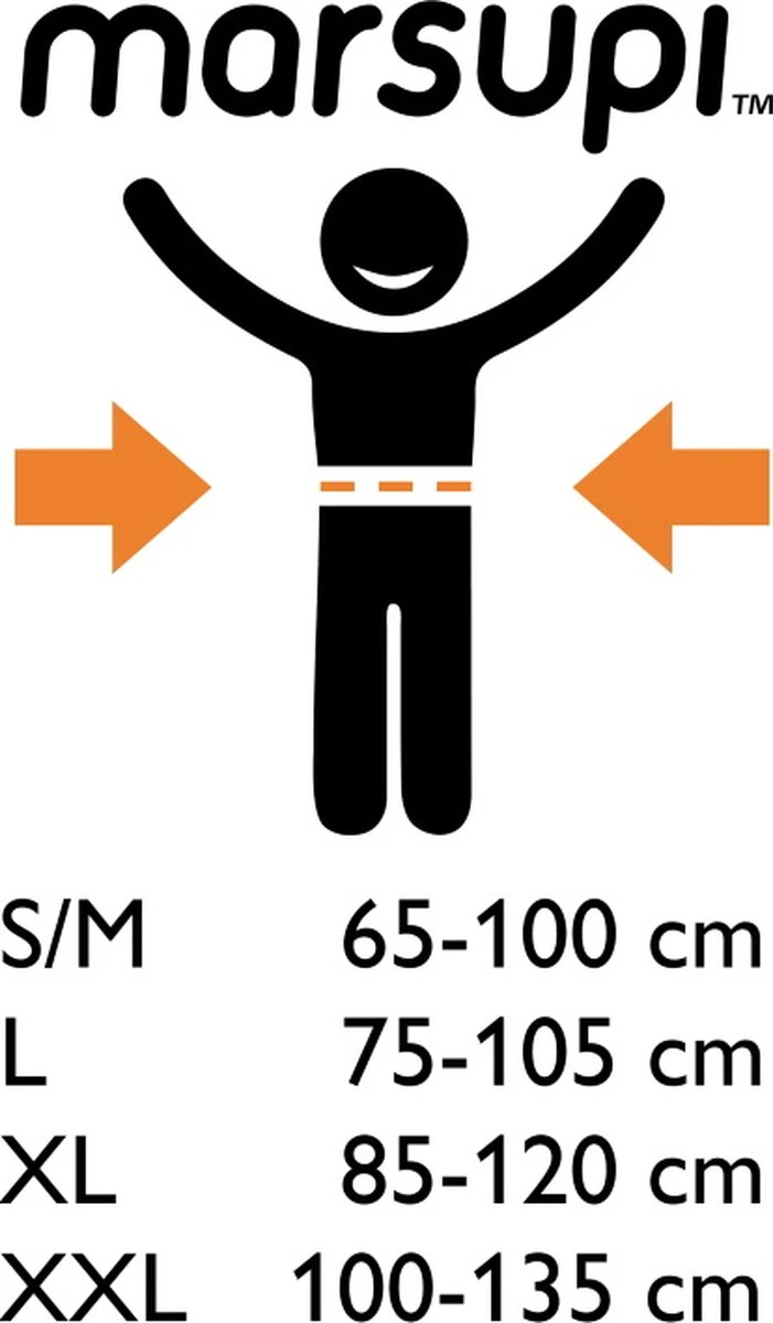 - Maat XXL: voor ouders met een tailleomvan van 100-135 cm (alleen in de grijze kleur)