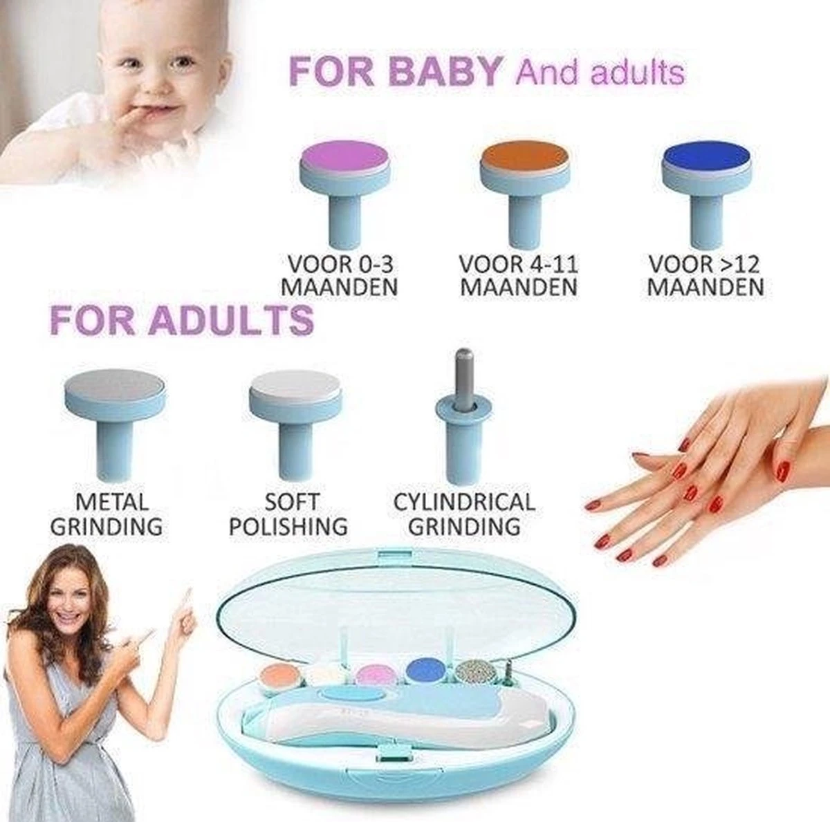 Deze baby nagelknipper wordt geleverd met maar liefst 3 zachte schuurpapieren opzetstukjes, geschikt voor baby’s en kinderen. Er zitten ook 3 opzetstukjes bij die geschikt zijn voor volwassenen.