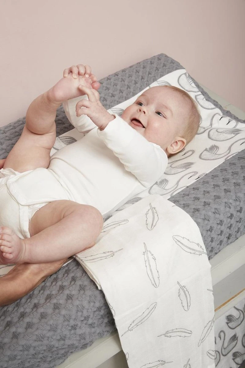Niet alleen supercute om te zien, maar ook een ware must have voor in je babyuitzet: deze Meyco Baby Hydrofiele Luiers 3-pack Feathers-Clouds-Dots. De doeken zijn namelijk onmisbaar bij de verzorging van jouw baby, dreumes of zelfs peuter. Met deze set van 3 met ieder een speelse, herhalende print, heb je er gelijk drie in één. De veelzijdige doeken, gemaakt van 100% katoen, zijn dé uitkomst als handdoek na het badje. Het hydrofiele katoen droogt snel en neemt vocht goed op, waardoor je je kleintje zelfs bij de kleinste plooitjes goed droog kan deppen. De stof voelt erg zacht aan en dat is precies wat tere babyhuidjes nodig hebben.