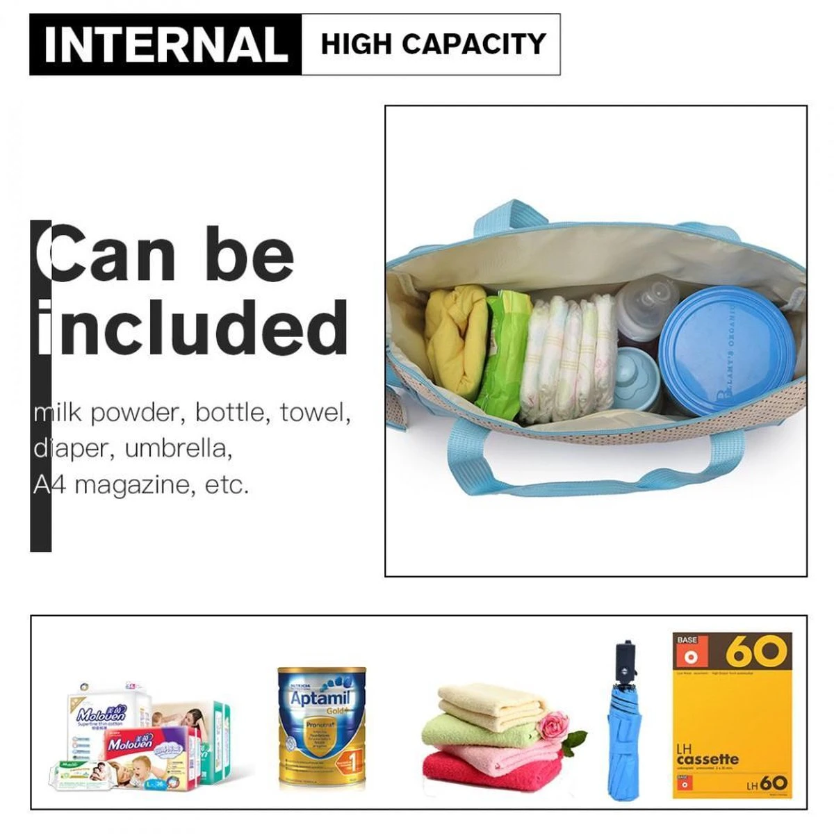 ▶ Een grote luiertas (40cm x 30cm x18cm)