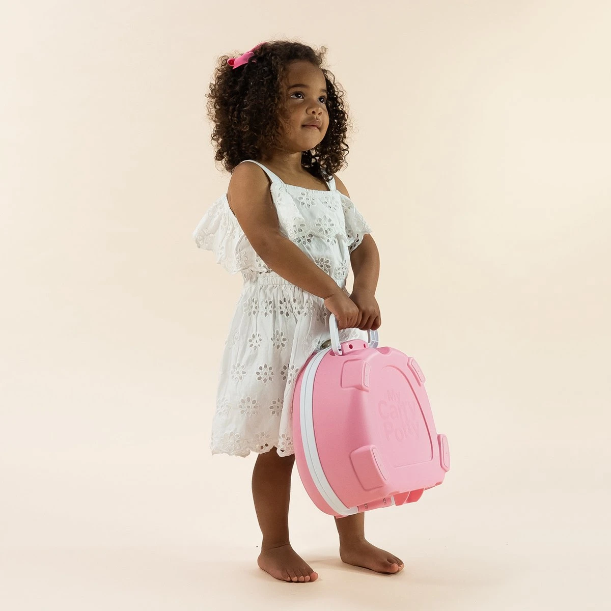 My Carry Potty helpt je daarmee. Dit potje is lichtgewicht en heeft een handig handvat, zodat je kind deze zelf mee kan nemen. Dat geeft vertrouwen, want moet je kind onderweg, dan heb je altijd het vertrouwde potje bij je. Vraag altijd eerst thuis of je kind nog een plasje moet doen voordat jullie gaan. Meestal is het antwoord nee en je bent nog niet weg of je hoort op de achterbank: ik moet plassen! Stop op een veilige plek, pak het plaspotje en je kind kan snel plassen of een poepje doen. Of je loopt door de stad (of bent in een pretpark) en je kind moet plassen. Bij de meeste winkels mag je geen gebruik maken van het toilet, ook niet als je een kind bent. En wanneer kinderen zeggen dat ze moeten, dan zeggen ze eigenlijk ‘ik moet nu’! Pak je My Carry Potty onderuit de kinderwagen, zet deze op de grond en je kind kan meteen een plasje of poepje doen. Maar waar laat je dit dan? Geen paniek! My Carry Potty is lekvrij en geurdicht af te sluiten. Doe je potje met de deksel dicht, leg deze terug onderin de kinderwagen en gooi deze thuis leeg. Even een doekje erdoor en je My Carry Potty is weer klaar voor gebruik. Een handige tip: stop altijd een wc rol in je My Carry Potty, dan kun je deze niet vergeten en blijft deze ook schoon.
