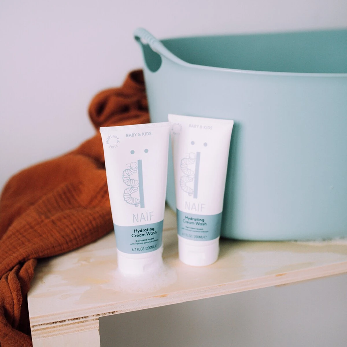 Naïf’s wascrème zorgt voor extra hydratatie én voor een milde reiniging. Dit komt door de toevoeging van kokosnoot, katoenzaad, zonnebloemolie en plantaardige glycerine, wat de huid zacht maakt. Extra voeding dus voor de gevoelige en droge (baby)huid en voor kinderen met atopisch eczeem. Geen jeuk. Geen irritatie. Wel een zachte, gehydrateerde huid inclusief Naïf’s heerlijke, iconische geur. Je kunt de wascrème gebruiken onder de douche of in bad.
