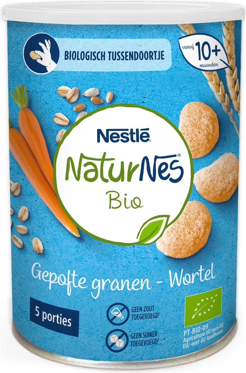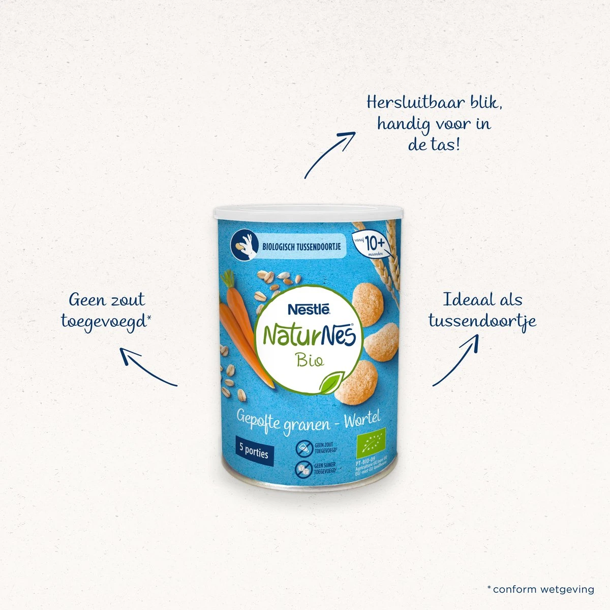 Biologische gepofte granen met groente voor kindjes vanaf 10 maanden oud. Speciaal ontwikkeld voor kleine handjes om te pakken, proeven en ontdekken. Elk blikje bevat maar liefst 5 porties en is volledig hersluitbaar. Een lekker en ideaal tussendoortje.