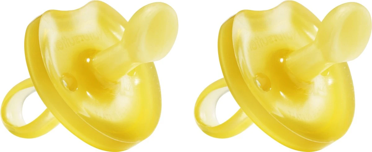 Een set van twee heerlijk zacht fopspeentjes van Natursutten, anatomisch gevormd, gemaakt van 100% natuurlijk rubber. De naam Natursutten betekent eigenlijk natuurlijk zuigen en dat is goed merkbaar.