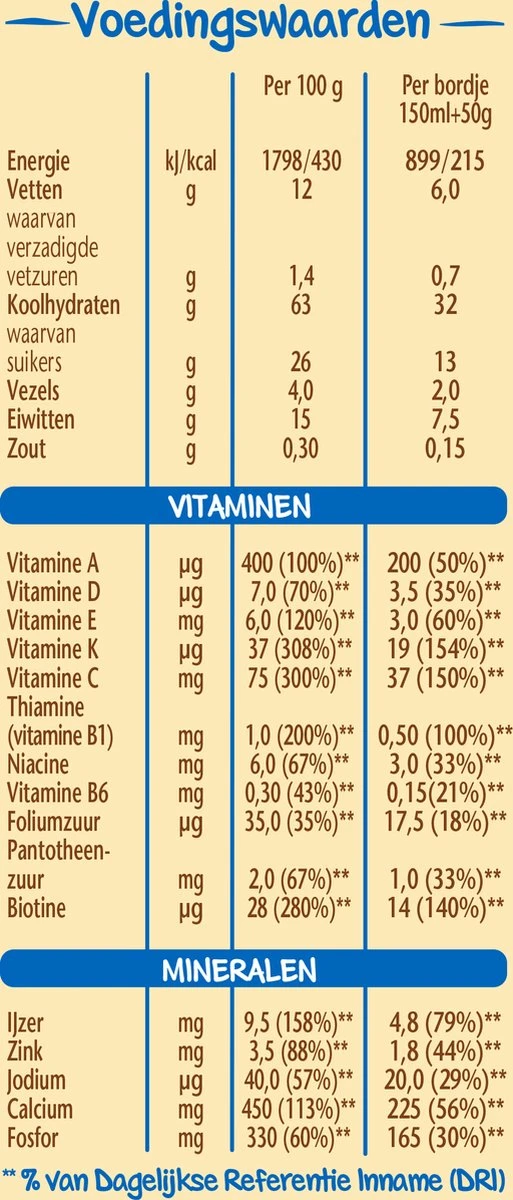 Met Nestlé Ontbijtpapje Biscuit geef je altijd een verantwoord, lekker en compleet ontbijtje. Omdat de pap al melk bevat, hoef je er alleen nog maar water aan toe te voegen. Lekker makkelijk!