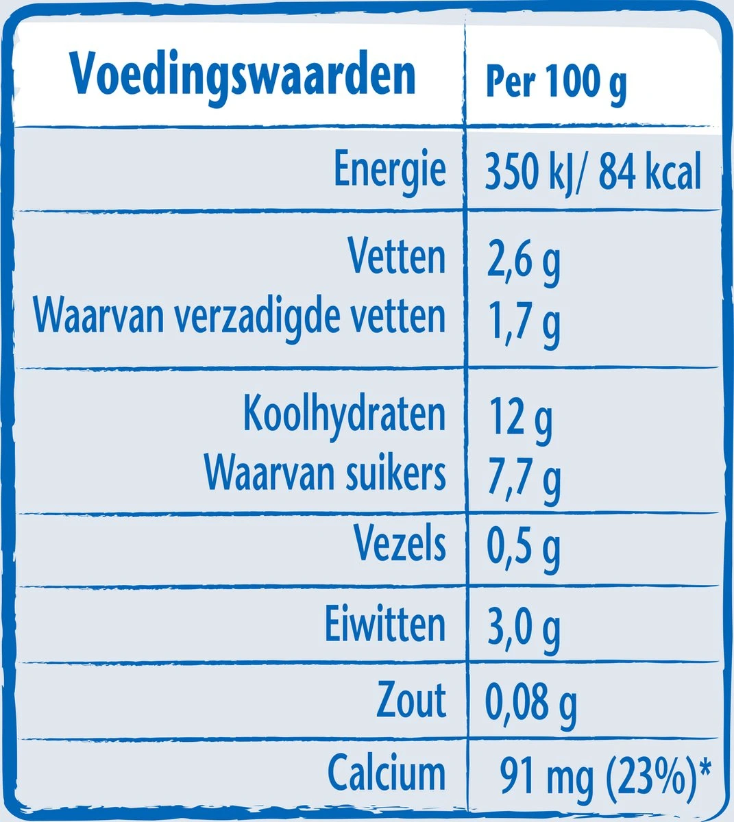 - Draagt bij aan de dagelijkse aanbeveling van de inname melk-en zuivelproducten.