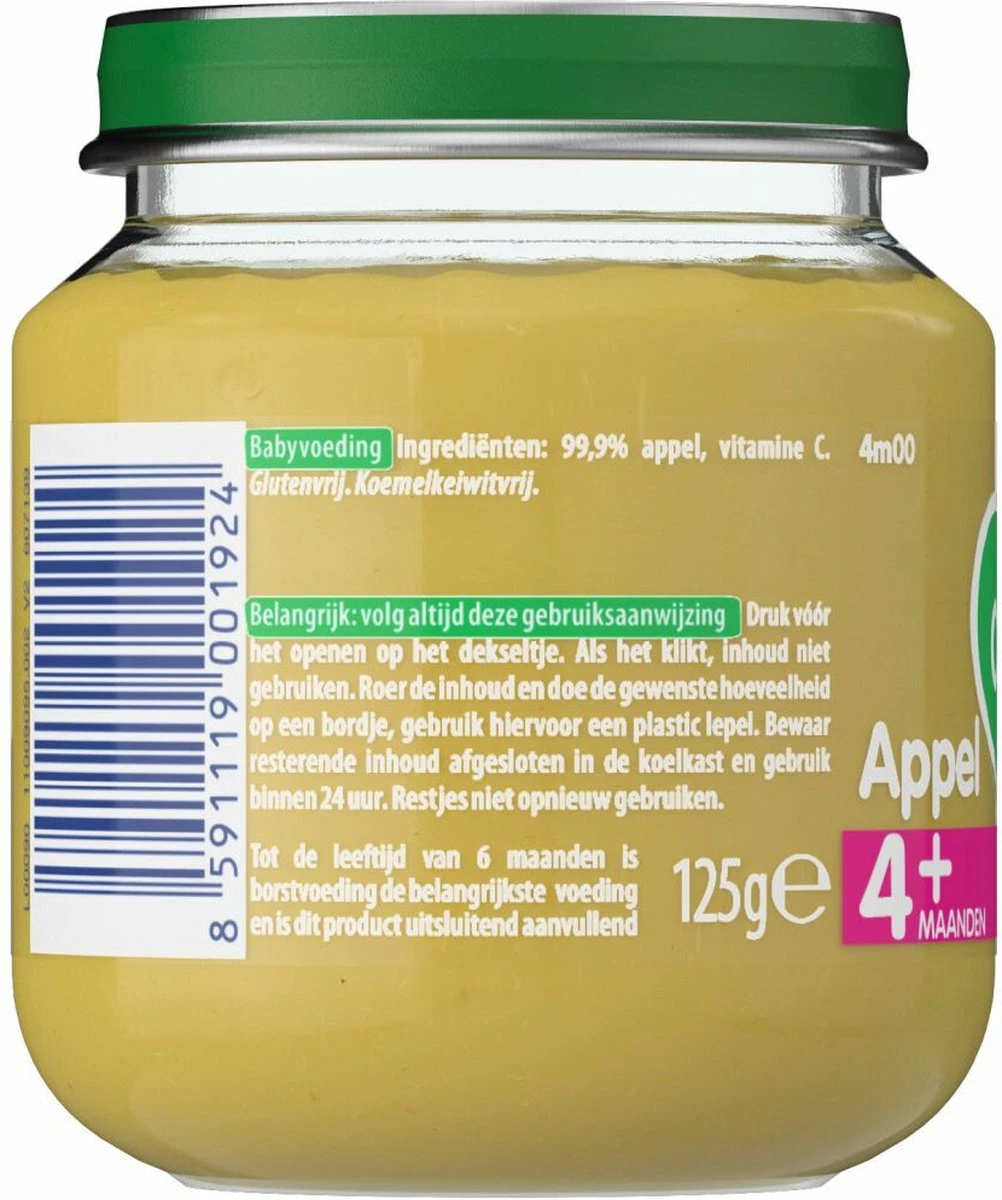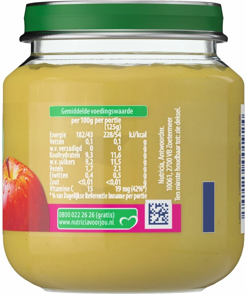 - Één soort fruit in de hoofdrol en een aangepaste structuur, afgestemd op de leeftijd en voedingsbehoefte van je kindje