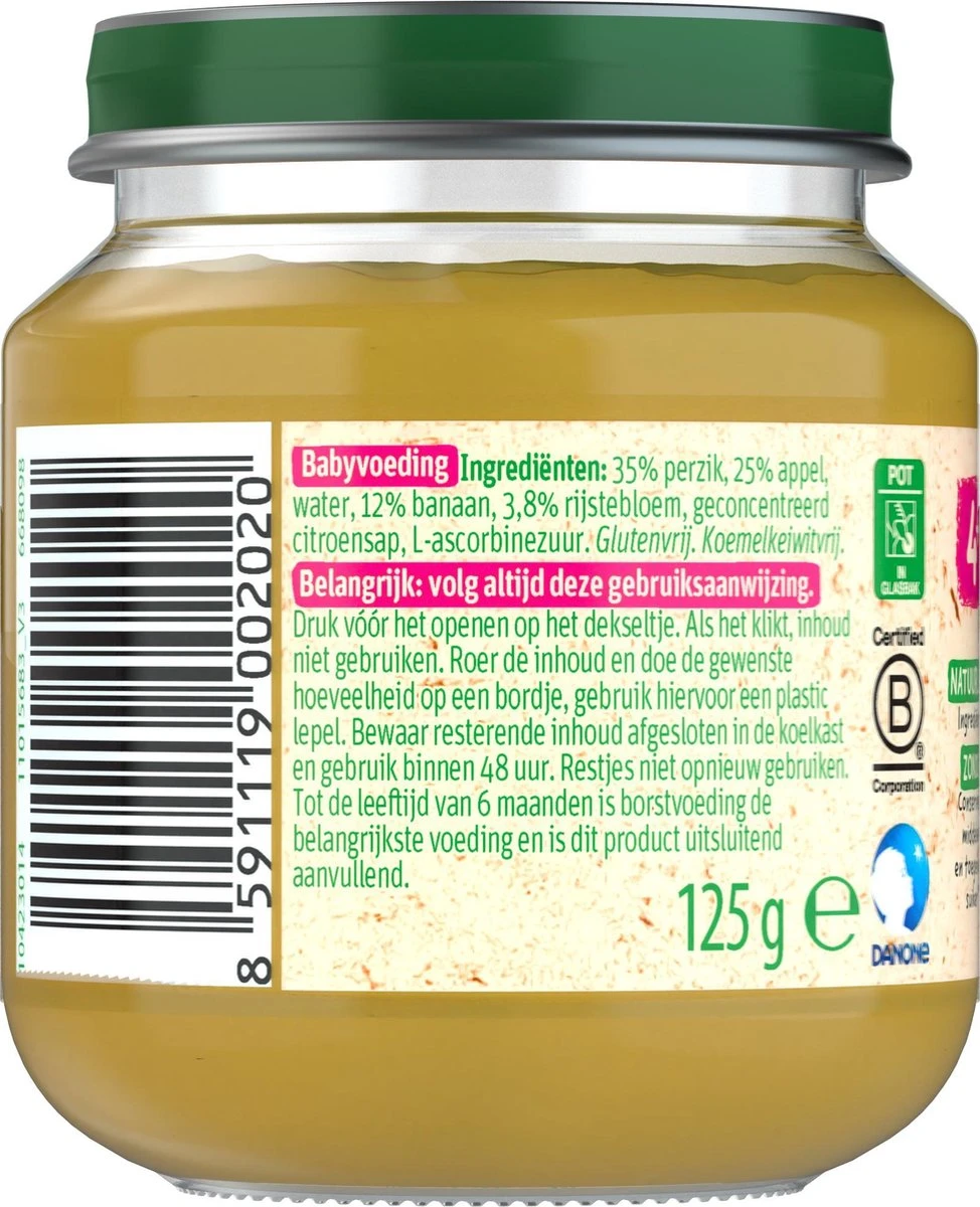 - Één soort fruit in de hoofdrol en een aangepaste structuur, afgestemd op de leeftijd en voedingsbehoefte van je kindje