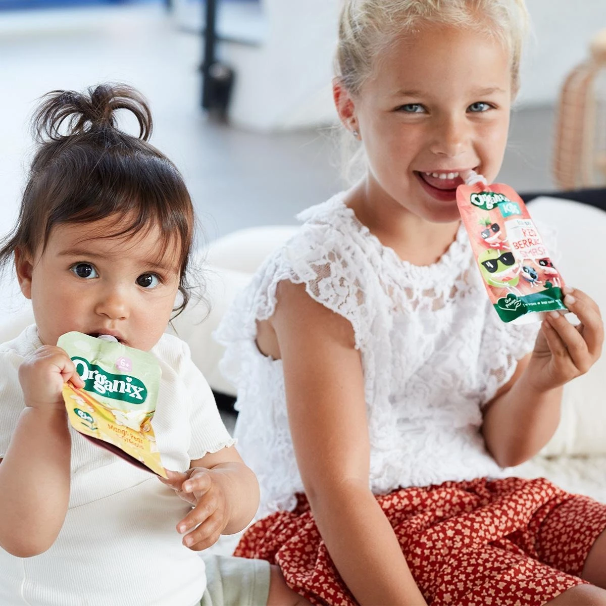Een lekker en verantwoord tussendoortje met fruit, groente of granen in een handig knijpzakje. Gemaakt van de beste biologische ingrediënten. Zonder toegevoegde suikers* en andere onnodige toevoegingen, zoals kleurstoffen**, smaakstoffen en conserveermiddelen**, want daar staat de Organix No Junk Promise voor. Makkelijk mee te nemen in je tas en ideaal onderweg tijdens een autovakantie of in het vliegtuig! Het Organix knijpfruit assortiment bestaat uit toegankelijke smaken voor baby’s vanaf 6 maanden, aangevuld met verfijnde smaken waar peuters vanaf 12 maanden dol op zijn.