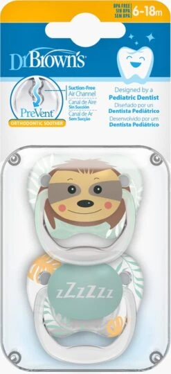 Dr. Brown’s Dr Brown’s Fopspeen – Fase 1 – Animal Faces – 0-6 Maanden – Blauw – 2-pack