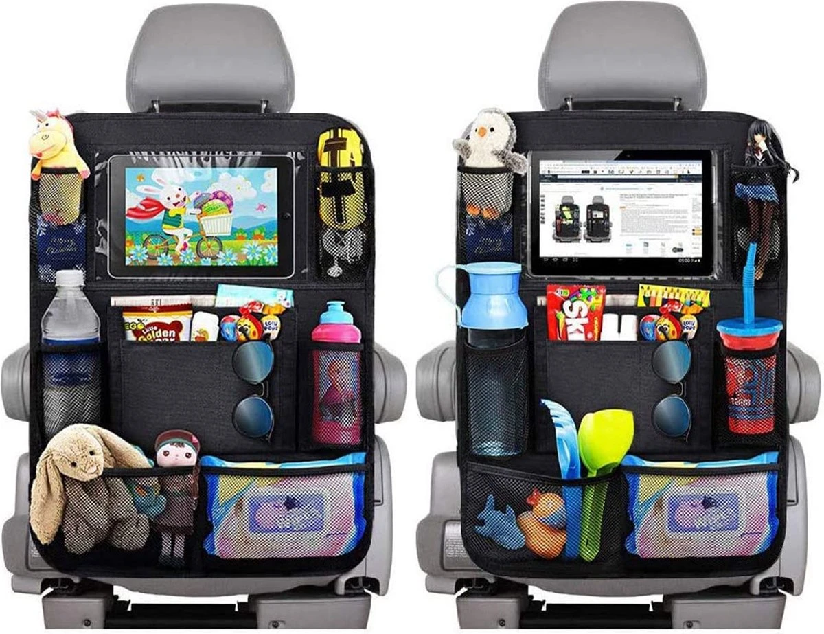 Deze YONO autostoel organizers met tablethouder zijn ideaal voor onderweg. De organizers zijn beide voorzien van 10 vakjes om verschillende spullen handig in op te bergen. Hiervan is 1 vakje speciaal ontworpen om een tablet in te doen. De auto organizers zijn makkelijk te bevestigen aan de stoel met behulp van 2 riempjes.